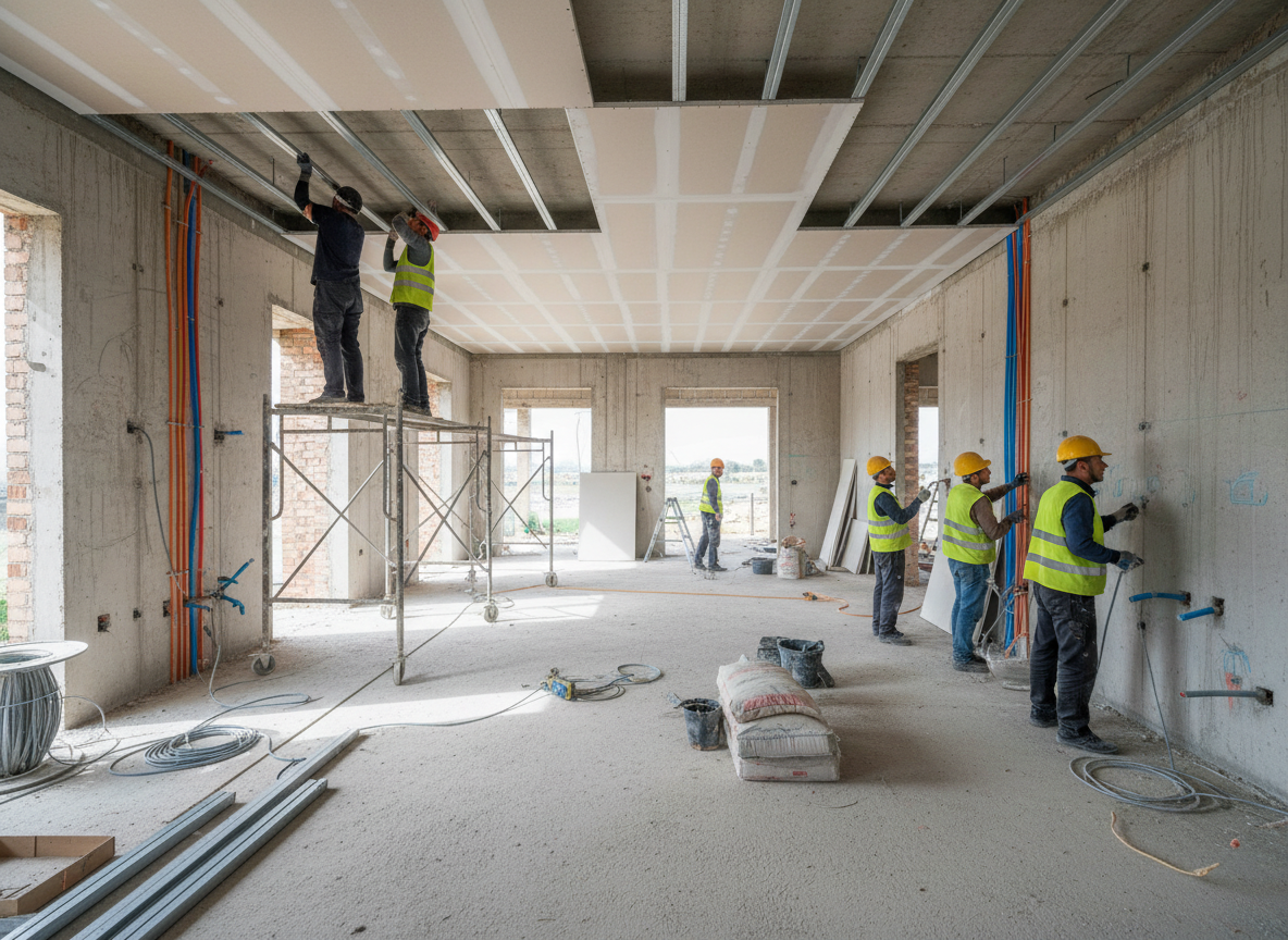 Đây là giai đoạn quyết định sự hoàn chỉnh của toàn bộ công trình. Các hạng mục sẽ được triển khai theo đúng trình tự kỹ thuật từ phần thô, hoàn thiện bề mặt, lắp đặt nội thất, thiết bị đến trang trí hoàn thiện. Tất cả đều phải tuân thủ strict quy chuẩn an toàn và chất lượng.