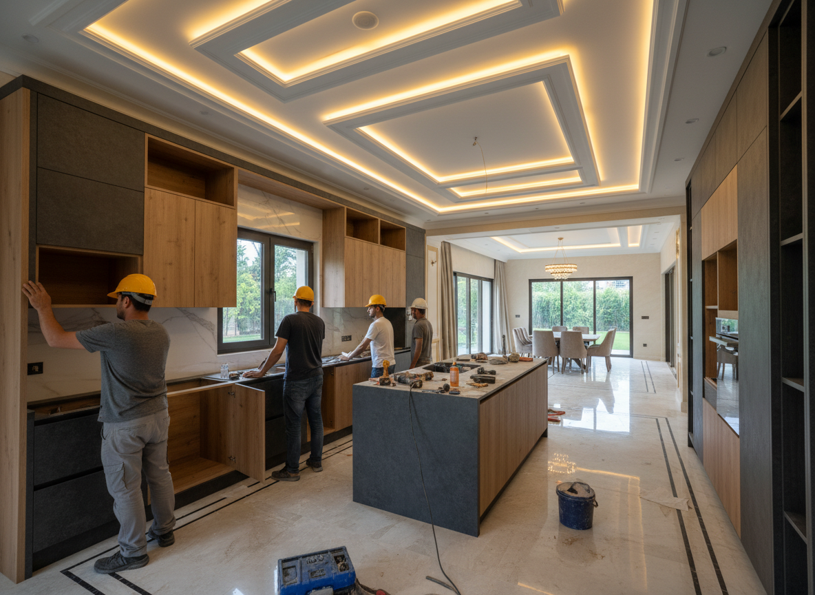 Thi công nội thất biệt thự là toàn bộ quá trình triển khai, sản xuất, lắp đặt và hoàn thiện phần nội thất bên trong căn biệt thự theo bản vẽ thiết kế đã được phê duyệt. Quá trình này bao gồm các hạng mục như thi công trần – tường – sàn, hệ thống điện nước âm tường, hệ thống chiếu sáng, sản xuất và lắp đặt đồ nội thất, hoàn thiện bề mặt vật liệu, trang trí và nghiệm thu bàn giao.