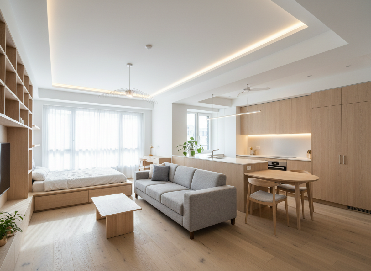 Phong cách Nhật Bản – tối giản: Tập trung vào sự tinh gọn, ít đồ nhưng chất lượng cao, tận dụng tối đa ánh sáng và không gian mở, rất phù hợp với căn hộ 60m2.