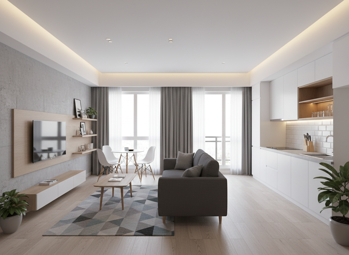 Diện tích căn hộ: Căn hộ càng lớn, khối lượng thi công càng nhiều, chi phí vật tư, nhân công, vận chuyển cũng tăng theo. Tuy nhiên, nếu biết cách tối ưu thiết kế, căn hộ lớn vẫn có thể thi công với mức chi phí hợp lý.