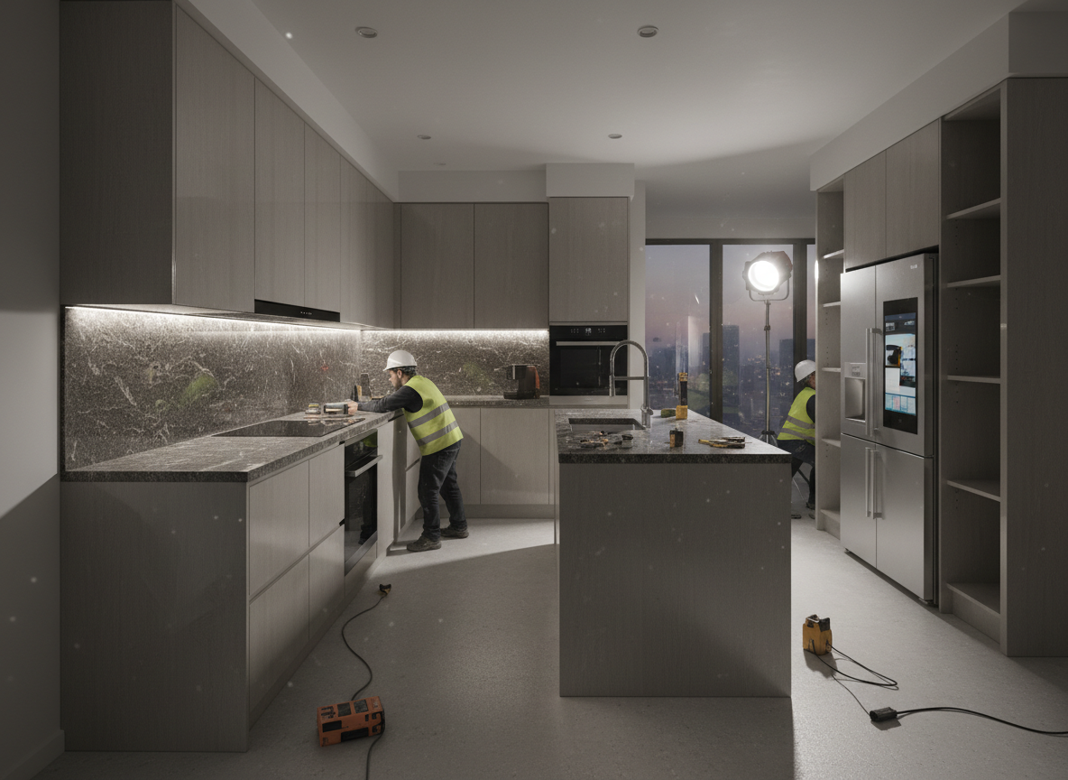 Thi công nội thất chung cư luxury là quá trình hiện thực hóa các bản vẽ thiết kế nội thất cao cấp bằng hệ thống giải pháp kỹ thuật, vật liệu thượng hạng và quy trình thi công chuyên nghiệp, nhằm tạo nên một tổng thể không gian sống sang trọng, tinh tế, chuẩn mực về thẩm mỹ và hoàn hảo về công năng sử dụng. Khác với thi công nội thất thông thường, luxury đòi hỏi mức độ hoàn thiện gần như tuyệt đối, từ bề mặt vật liệu, độ chính xác trong lắp đặt, sự đồng bộ của ánh sáng, màu sắc cho đến cảm giác không gian mà người sử dụng trực tiếp trải nghiệm mỗi ngày.