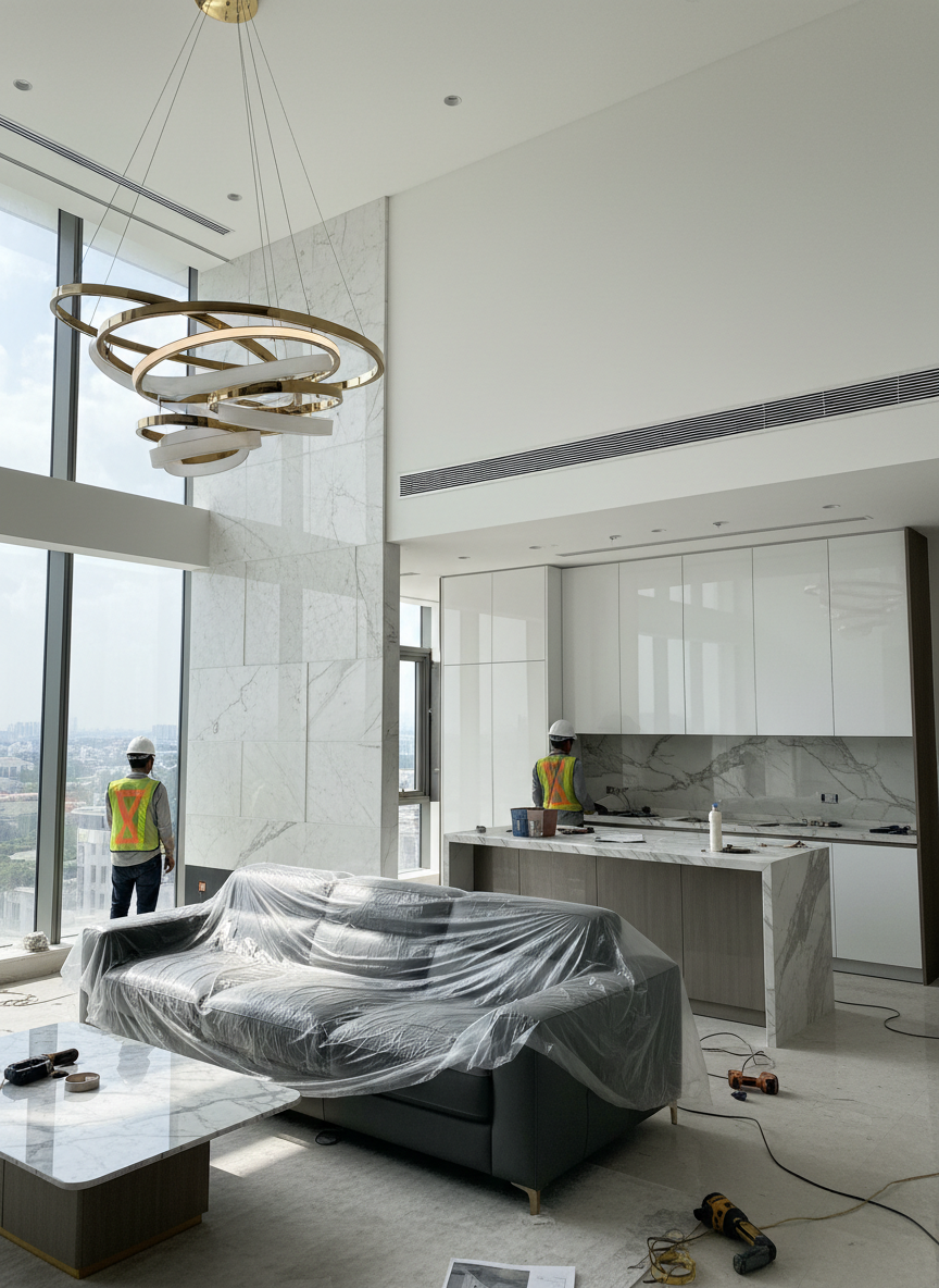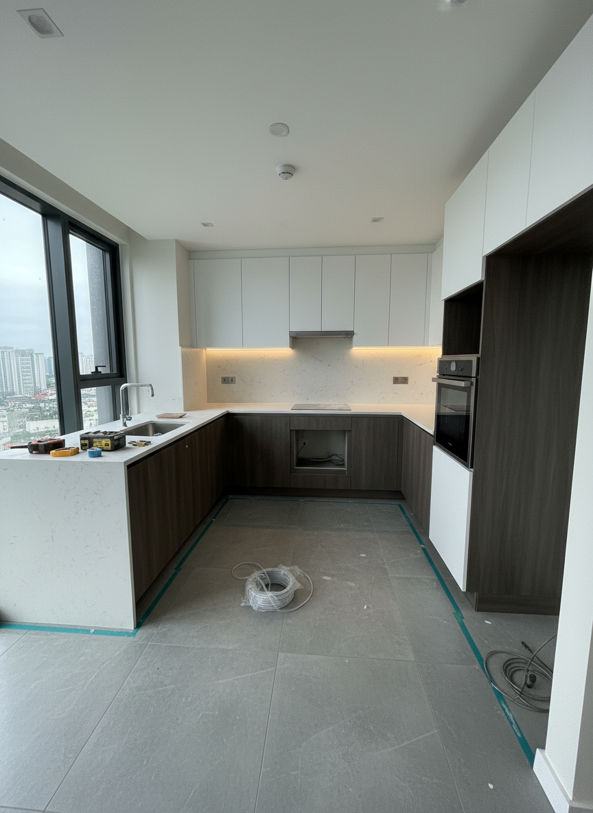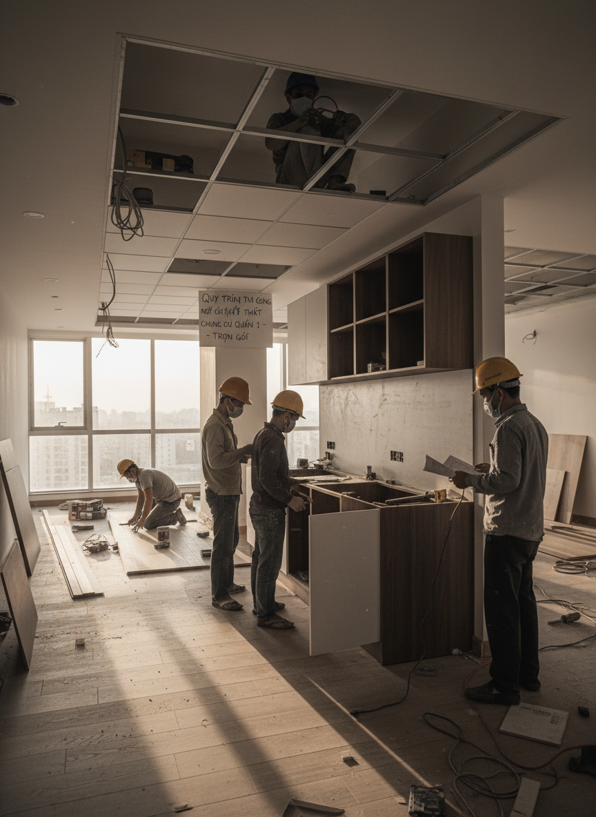 Mỗi hạng mục đều đòi hỏi kỹ thuật thi công cao, đặc biệt là trong môi trường chung cư cao tầng tại Quận 1, nơi quy định khắt khe về tiếng ồn, an toàn lao động và phòng cháy chữa cháy.
