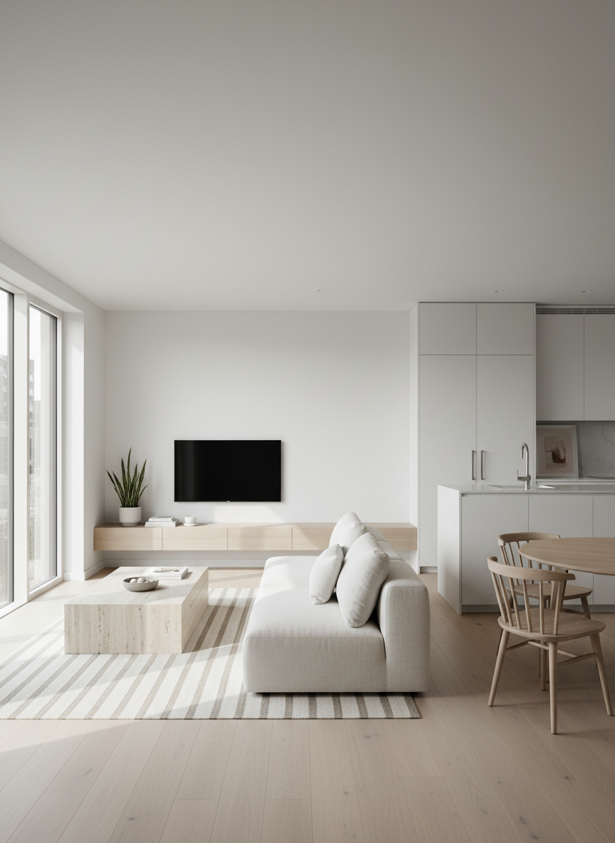 Phong cách hiện đại là lựa chọn phổ biến nhất nhờ tính tối giản, đường nét gọn gàng, màu sắc trung tính, dễ ứng dụng và tối ưu không gian hiệu quả, đặc biệt phù hợp với các căn hộ có diện tích từ nhỏ đến trung bình.