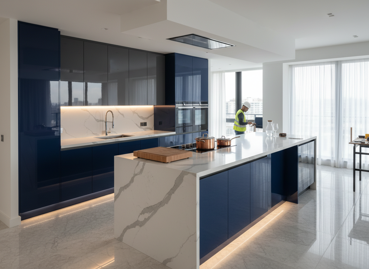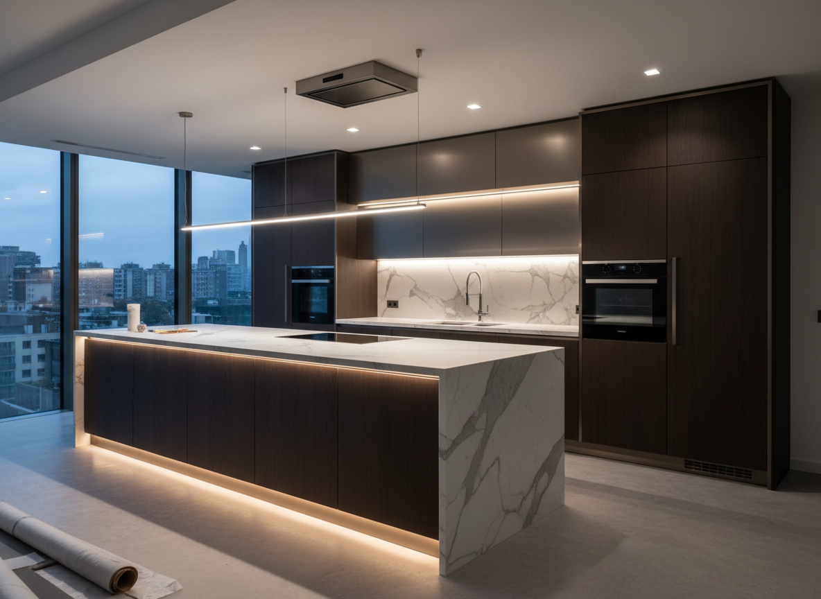 Phòng bếp trong căn hộ sang trọng không chỉ là nơi nấu nướng mà còn là không gian gắn kết các thành viên trong gia đình. Thi công phòng bếp chung cư sang trọng luôn chú trọng đến sự khoa học trong bố trí, tối ưu công năng sử dụng và đảm bảo yếu tố thẩm mỹ cao cấp.
