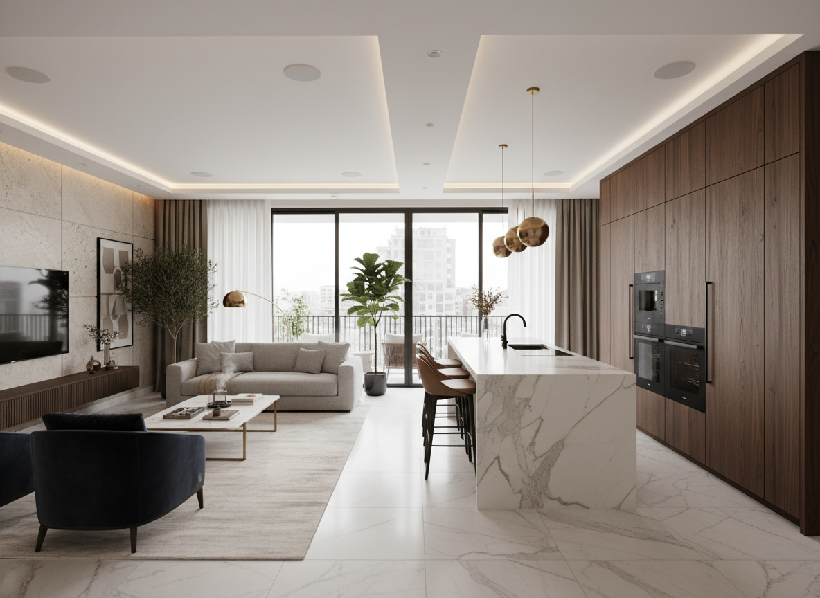Chi phí thi công nội thất chung cư sang trọng phụ thuộc vào nhiều yếu tố như diện tích căn hộ, phong cách thiết kế, mức độ đầu tư vật liệu, số lượng hạng mục nội thất, thiết bị đi kèm và yêu cầu cá nhân hóa của gia chủ. Những căn hộ sử dụng nhiều vật liệu nhập khẩu cao cấp, tích hợp hệ thống nhà thông minh, thiết bị hiện đại thường có chi phí cao hơn so với các phương án sang trọng tiết chế.