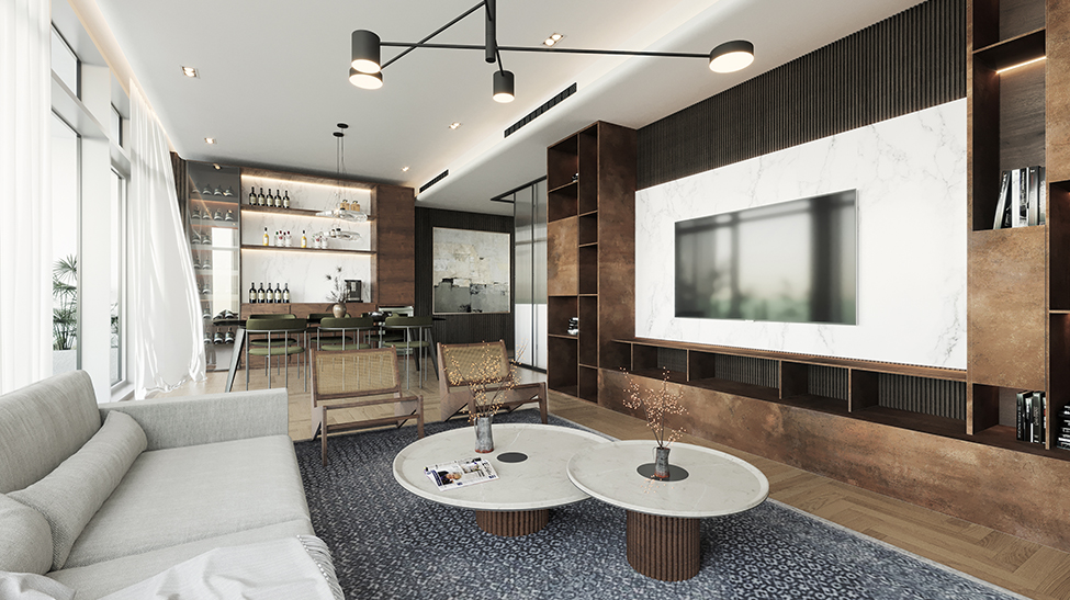 Sau khi thống nhất mặt bằng 2D, đội ngũ thiết kế sẽ lên phối cảnh 3D chi tiết, thể hiện màu sắc, vật liệu, kích thước từng món đồ nội thất. Khách hàng được xem và yêu cầu điều chỉnh trước khi chốt phương án.