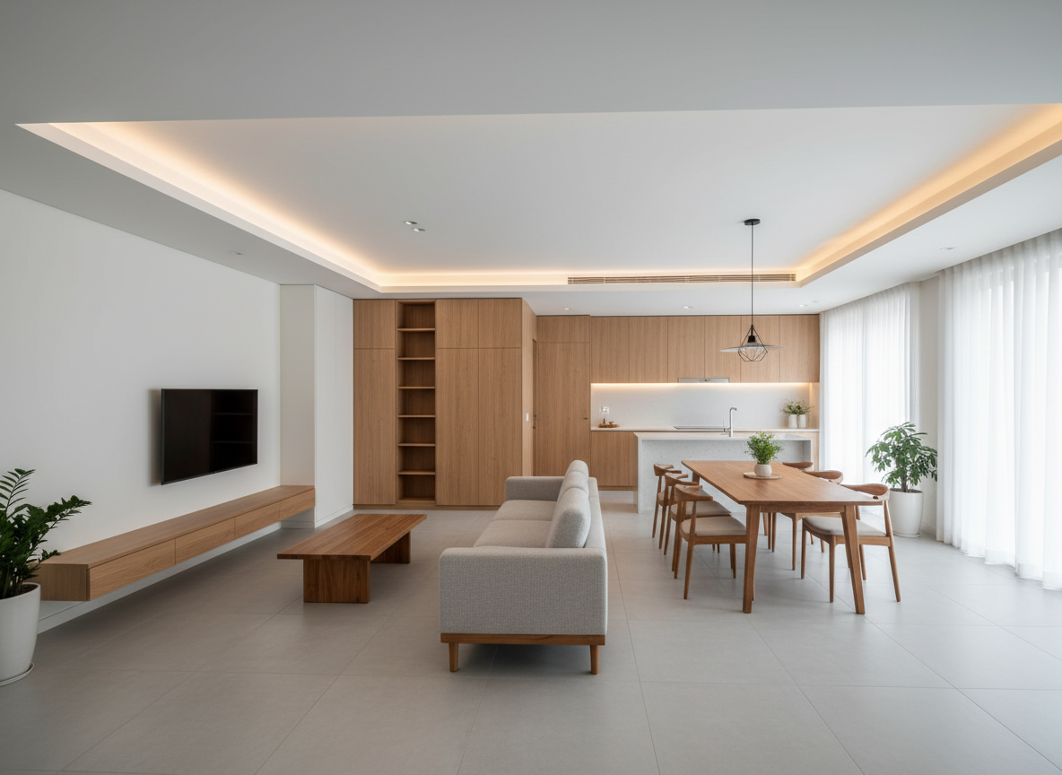 Phong cách Japandi là sự kết hợp giữa Nhật Bản và Bắc Âu, tập trung vào gỗ sáng màu, bố cục nhẹ nhàng và ánh sáng tự nhiên. Thi công phong cách này cần chọn vật liệu chuẩn xác và xử lý các mối nối thật tinh tế vì đồ nội thất thường có thiết kế đơn giản nhưng yêu cầu độ hoàn thiện cao.