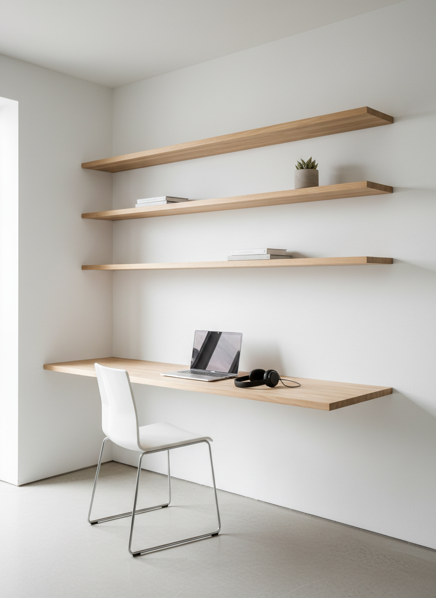 Cuối cùng, không thể thiếu yếu tố hình khối. Nội thất tối giản phải có đường nét gọn, thẳng, ít cong, ít chi tiết thừa. Tủ phải âm tường, bàn ghế phải tinh gọn, giường ngủ không chạm khắc cầu kỳ. Mọi thứ đều được tính toán kỹ lưỡng để tạo cảm giác nhẹ nhàng nhưng vẫn hiện đại.