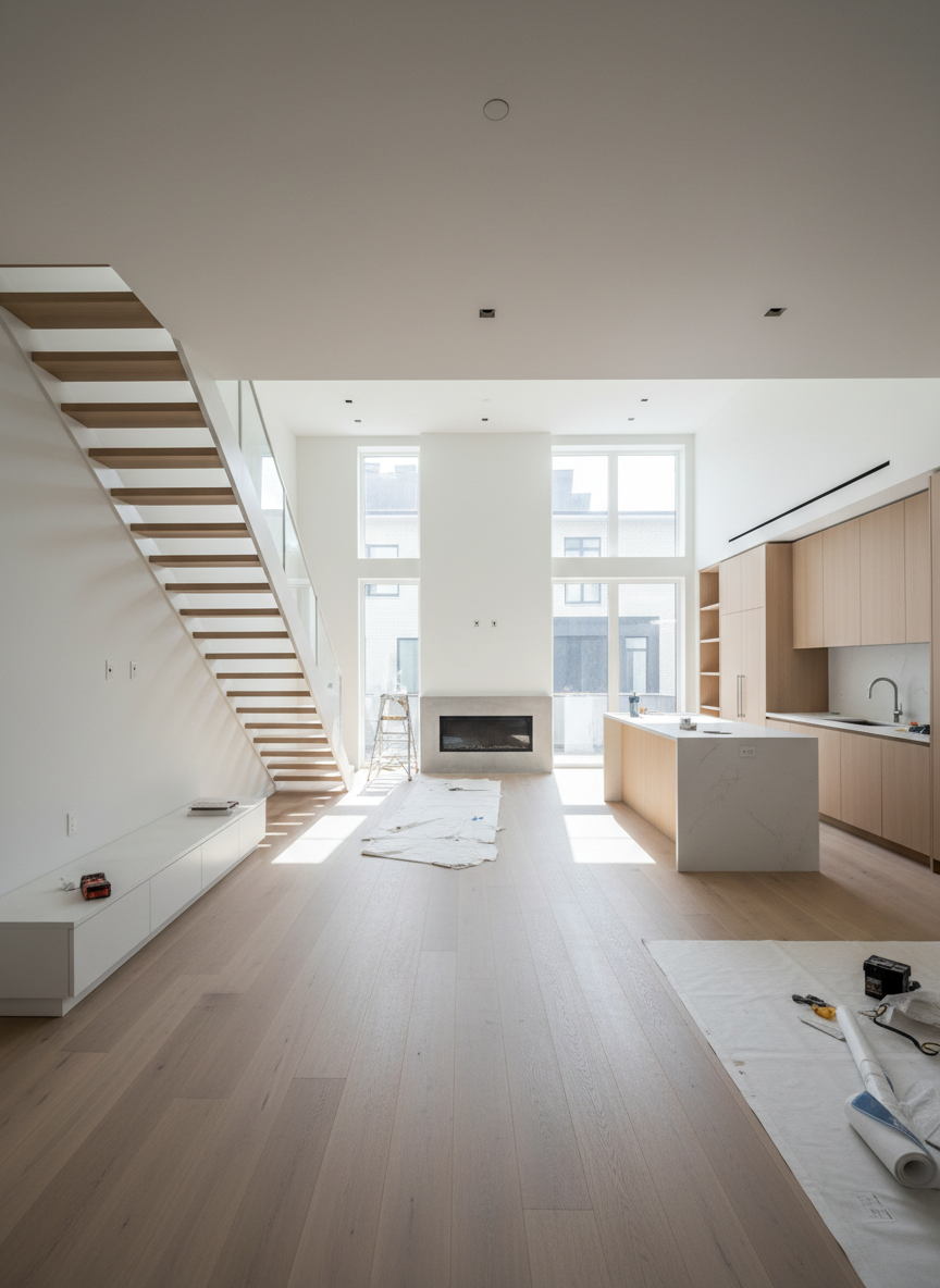 Thi công nội thất nhà phố phong cách tối giản đòi hỏi độ chính xác rất cao, từ việc đo đạc, sản xuất cho đến lắp đặt. Chỉ những đơn vị có kinh nghiệm mới đảm bảo được sự tinh gọn trong đường nét và độ mượt trong hoàn thiện. Một nhà thầu chuyên nghiệp sẽ biết cách xử lý phần kết cấu, điện nước, trần – sàn – tường sao cho không bị lộ những chi tiết thô như đường ống, dây điện hay các mối nối kém thẩm mỹ.