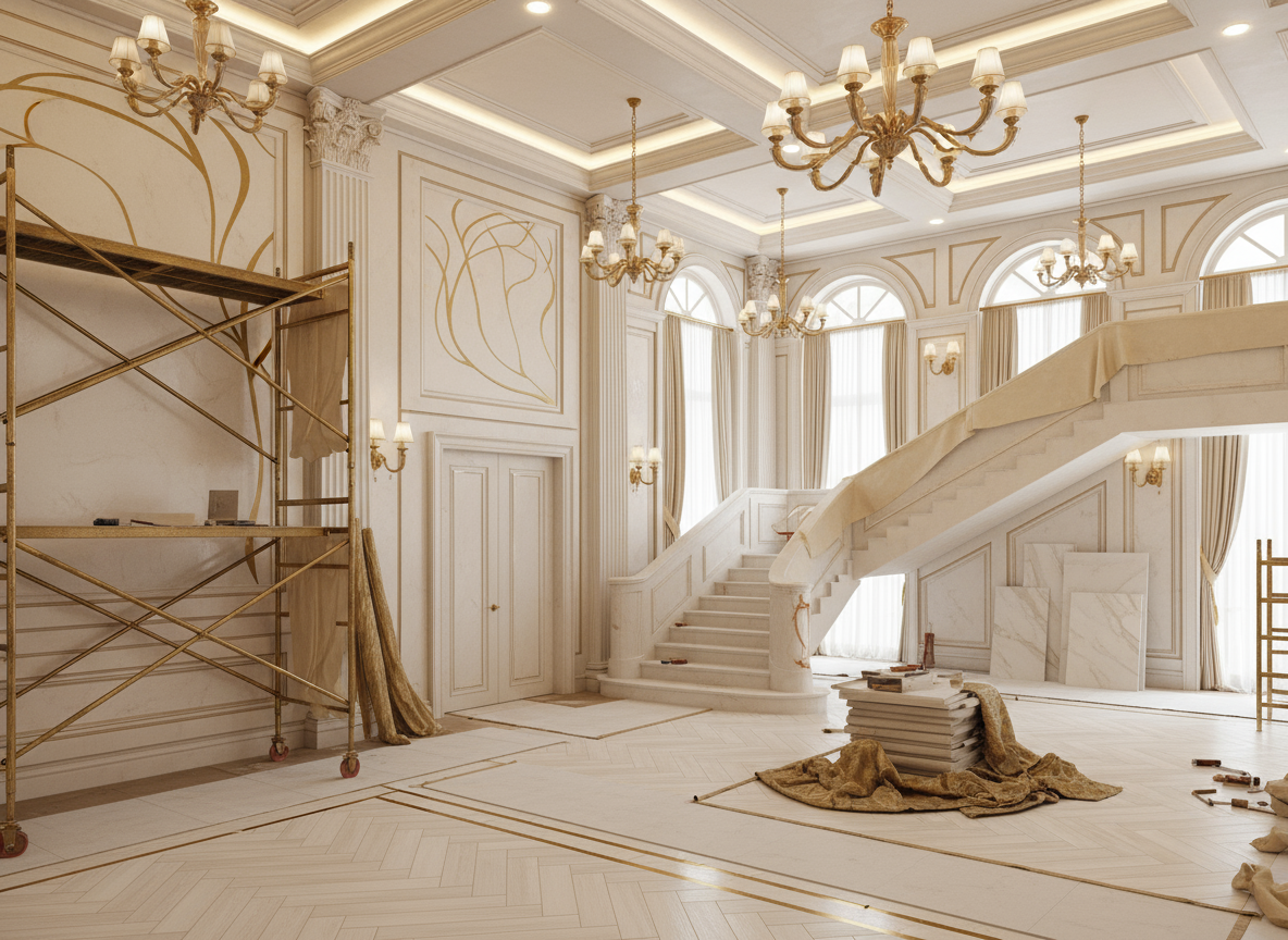 Tân cổ điển khác hoàn toàn phong cách hiện đại. Nếu đội thợ không có kinh nghiệm, phào chỉ sẽ bị lệch, mối nối lộ, sơn không đều, và tổng thể mất đi sự sang trọng.