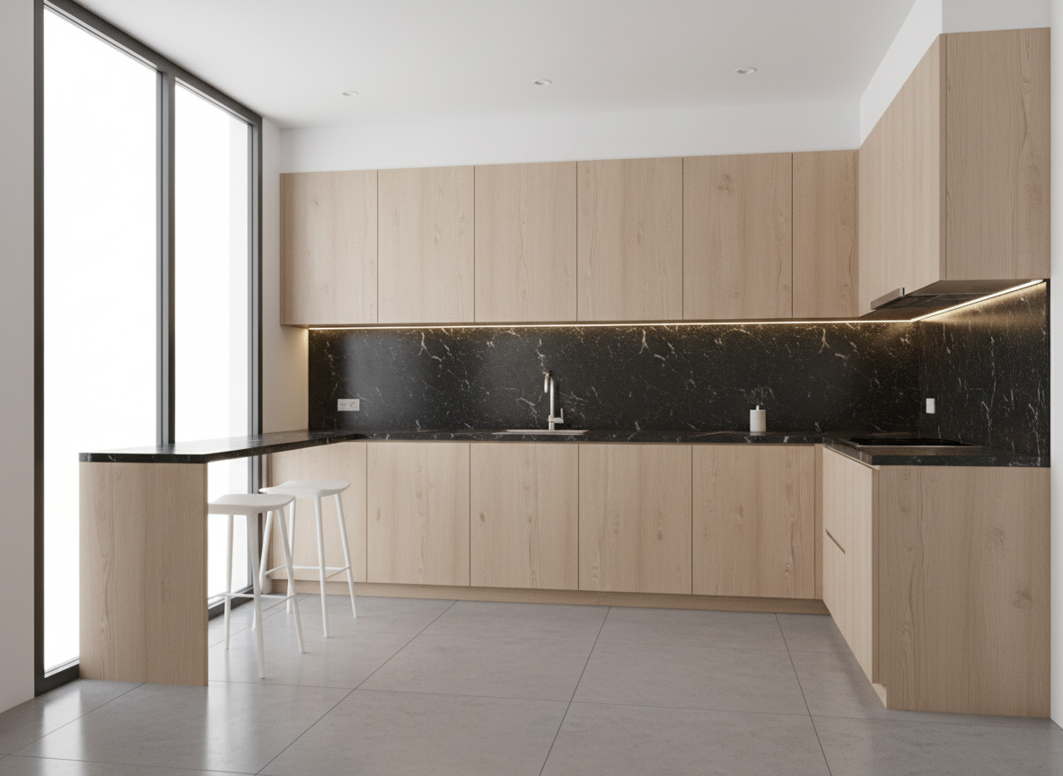 Bếp chữ L được đánh giá là giải pháp tối ưu cho phần lớn căn hộ chung cư hiện nay. Kiểu bếp này tận dụng góc tường hiệu quả, tăng không gian lưu trữ và phân chia khu vực nấu nướng – rửa – chuẩn bị thực phẩm một cách khoa học, thuận tiện. Với bếp chữ L, gia chủ có thể dễ dàng kết hợp thêm quầy bar mini hoặc bàn ăn liền kề để tăng tính thẩm mỹ và công năng.