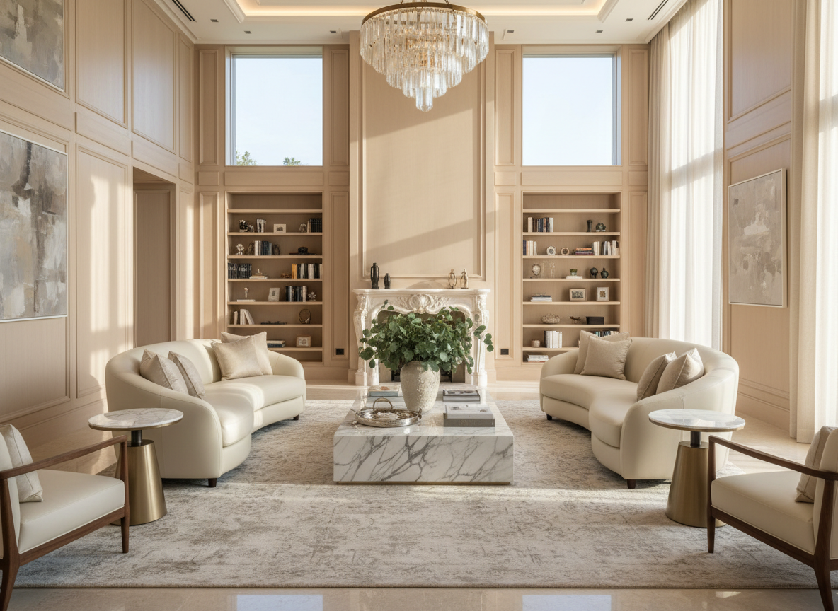 Là sự hòa quyện giữa vẻ đẹp cổ điển sang trọng và tinh thần hiện đại, phong cách tân cổ điển chú trọng vào phào chỉ, hoa văn mềm mại, gam màu trung tính và vật liệu cao cấp như gỗ tự nhiên, đá marble, da thật… tạo nên một không gian vừa đẳng cấp vừa bền vững theo thời gian.