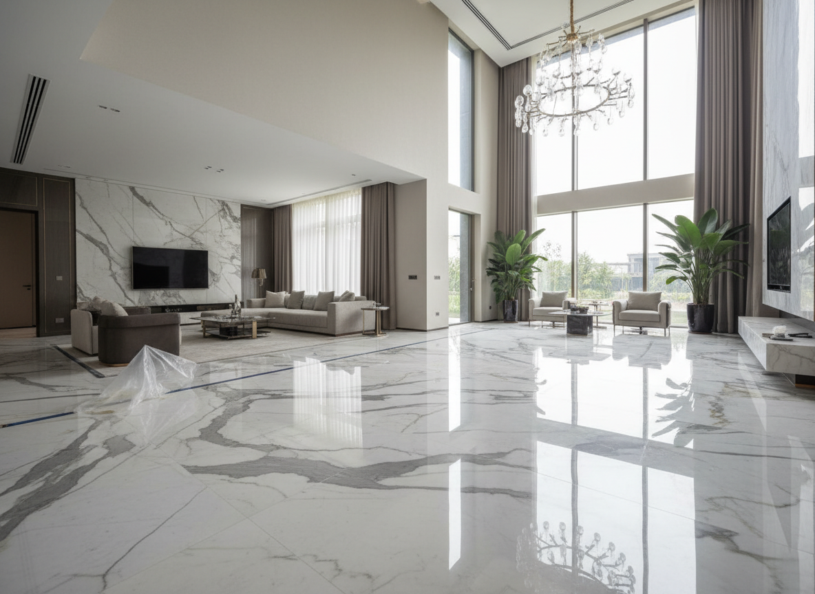 Đá tự nhiên: Marble, granite dùng cho sàn, ốp tường, bàn trà tạo điểm nhấn sang trọng.