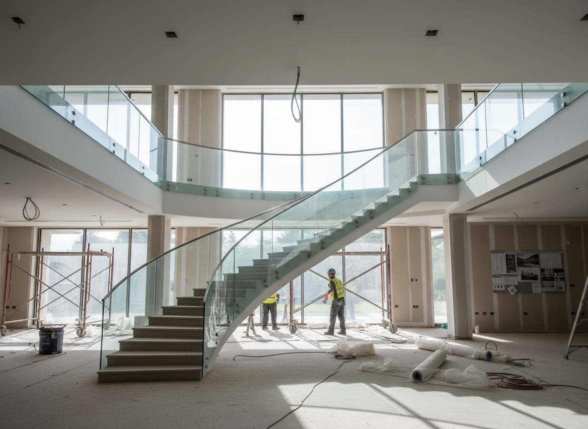 Thi công vách ngăn, cầu thang, lan can, tiểu cảnh trong nhà.