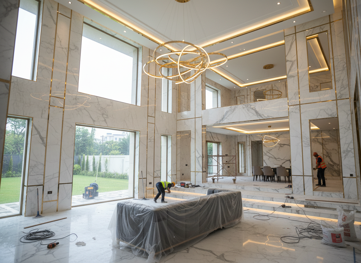 4. Quy trình thi công nội thất phòng khách biệt thự chuẩn kỹ thuật