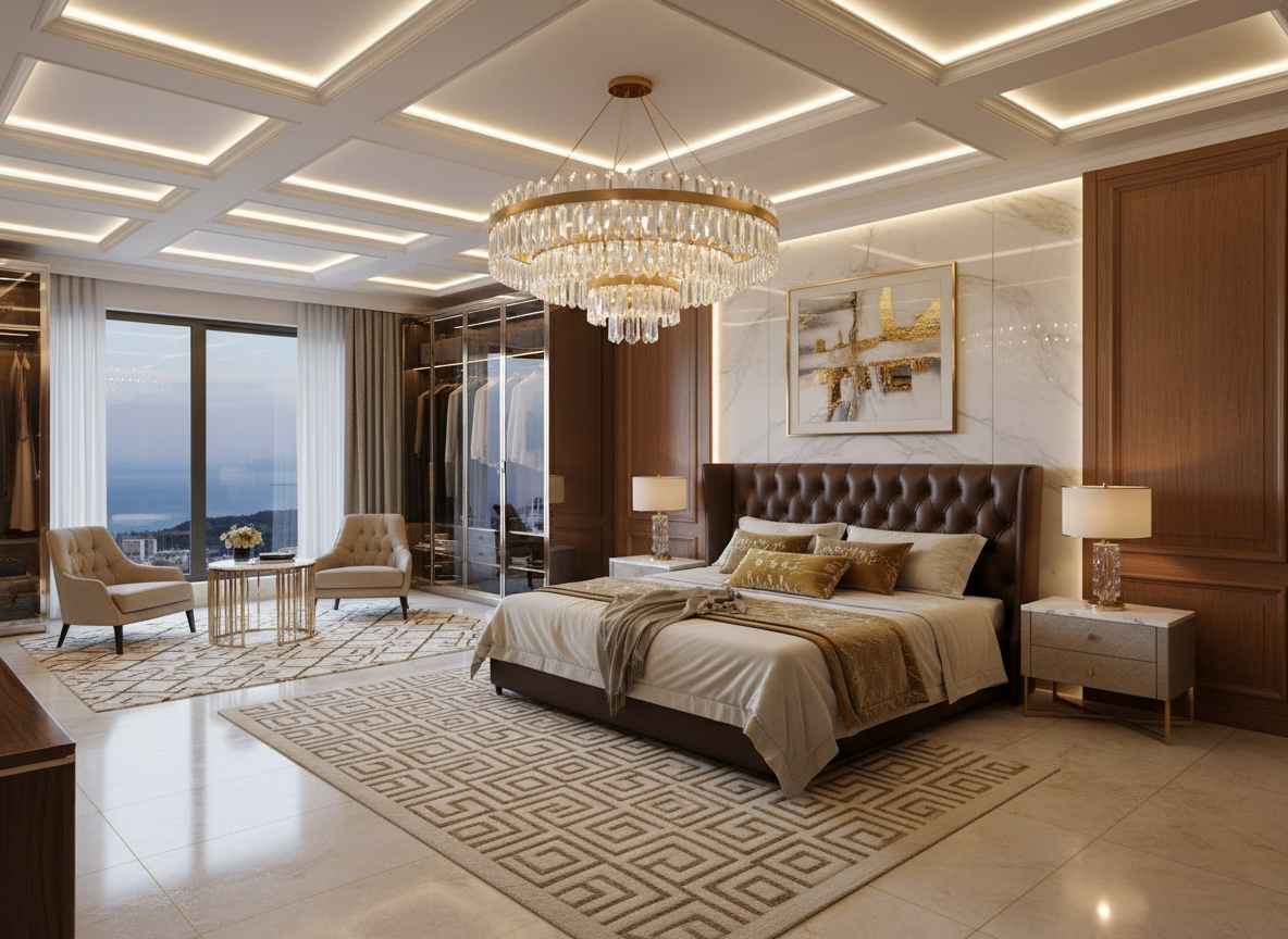 Luxury là đỉnh cao của sự sang trọng, tinh xảo và cá nhân hóa. Thi công nội thất phòng ngủ biệt thự Luxury yêu cầu vật liệu cực kỳ cao cấp như đá tự nhiên, kim loại mạ vàng, da thật, gỗ quý… Mỗi chi tiết đều được gia công tỉ mỉ, mang tính độc bản, thể hiện rõ vị thế và đẳng cấp của chủ nhân.
