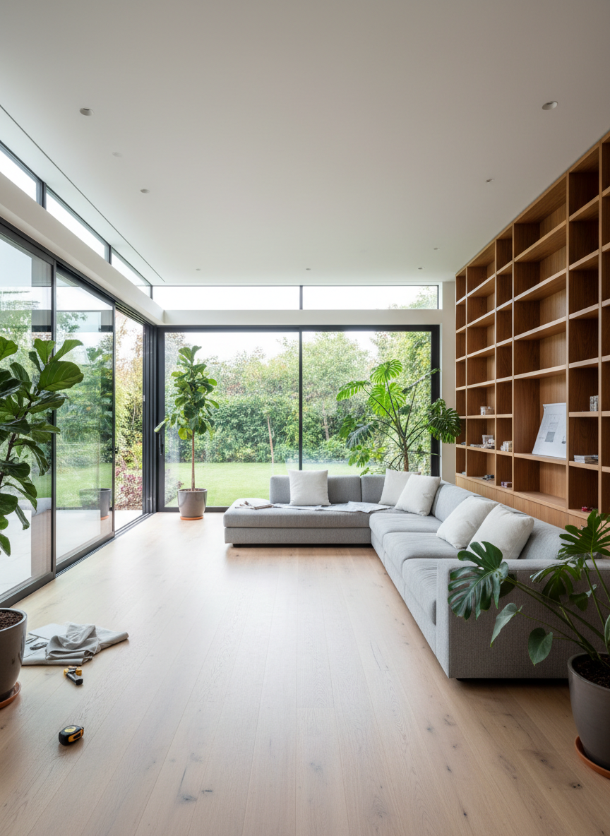 Không giống như thi công nội thất nhà phố hay chung cư, thi công phòng sinh hoạt chung trong biệt thự đòi hỏi tiêu chuẩn kỹ thuật cao hơn, tính cá nhân hóa cao hơn và sự phối hợp chặt chẽ giữa nhiều bộ phận: kiến trúc – nội thất – kỹ thuật điện nước – ánh sáng – vật liệu hoàn thiện. Sai lệch nhỏ trong thi công cũng có thể ảnh hưởng lớn đến tổng thể thẩm mỹ và công năng sử dụng.