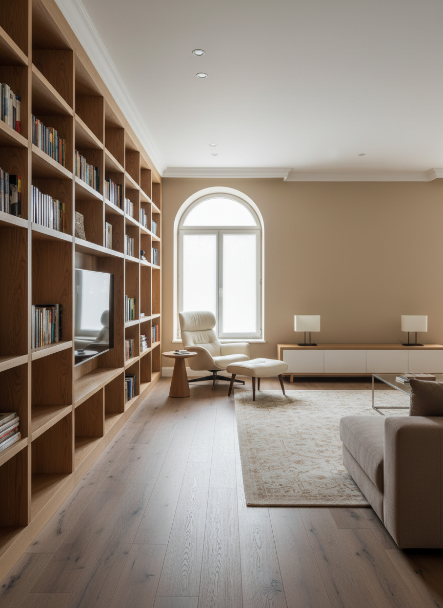 Tân cổ điển là sự giao thoa tinh tế giữa cổ điển và hiện đại. Khi thi công theo phong cách này, các chi tiết phào chỉ, đường cong mềm mại, hoa văn tinh xảo được sử dụng vừa đủ để tạo sự sang trọng mà không quá cầu kỳ. Vật liệu thường là gỗ tự nhiên, đá marble, da cao cấp, vải nỉ nhập khẩu.