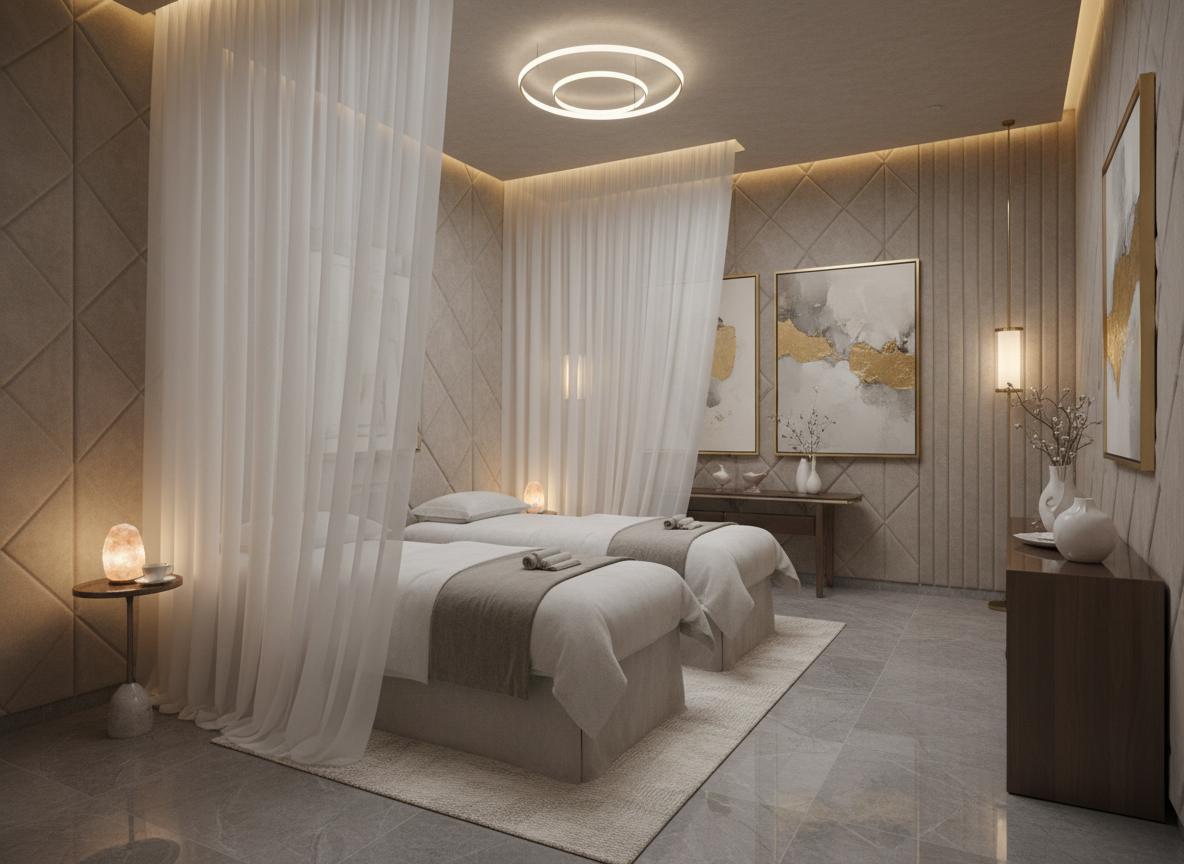 Ngoài ra, yếu tố cách âm cũng rất quan trọng, đặc biệt là với spa nằm trong khu dân cư hoặc trung tâm thương mại. Việc xử lý cách âm tốt sẽ giúp không gian luôn yên tĩnh, riêng tư, mang lại cảm giác thư giãn trọn vẹn cho khách hàng.