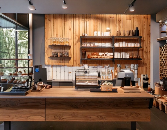 Phổ biến nhất là quầy pha chế cafe, thường thiết kế dạng chữ L hoặc chữ U để tối ưu thao tác. Quầy được bố trí khu vực đặt máy pha, máy xay, bồn rửa, ngăn tủ chứa nguyên liệu và kệ để ly. Phong cách thường hướng đến hiện đại, tối giản hoặc công nghiệp, phù hợp với quán cafe take away lẫn cafe ngồi lại.
