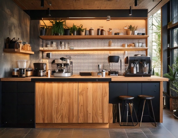 Với mô hình quán cà phê truyền thống hoặc cà phê máy, quầy pha chế cần tập trung không gian cho máy pha cà phê, máy xay, khu đánh sữa và khu ra đồ. Việc thi công quầy cần tính toán tải trọng máy, bố trí đường điện – nước âm quầy gọn gàng, đảm bảo an toàn và dễ bảo trì. Bluecons thường sử dụng khung xương gia cố chắc chắn kết hợp mặt quầy chịu lực cao để đáp ứng cường độ sử dụng liên tục.