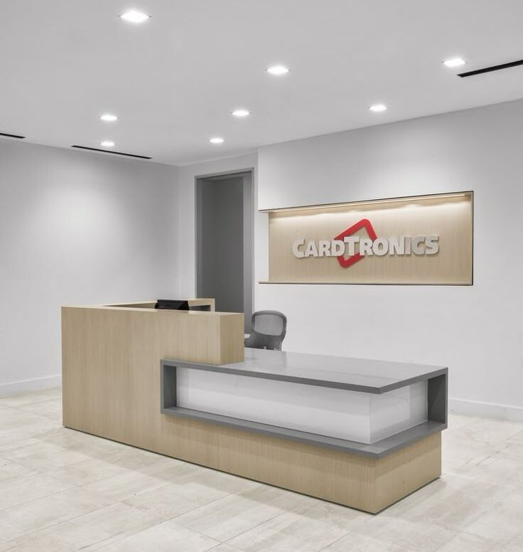 Trong các cửa hàng mỹ phẩm hoặc showroom trưng bày, quầy thu ngân đóng vai trò là điểm nhấn không gian. Nhờ khả năng gia công đa dạng, plywood có thể tạo hình bo cong, uốn lượn hoặc kết hợp vật liệu khác như kính, đá để tăng tính thẩm mỹ.