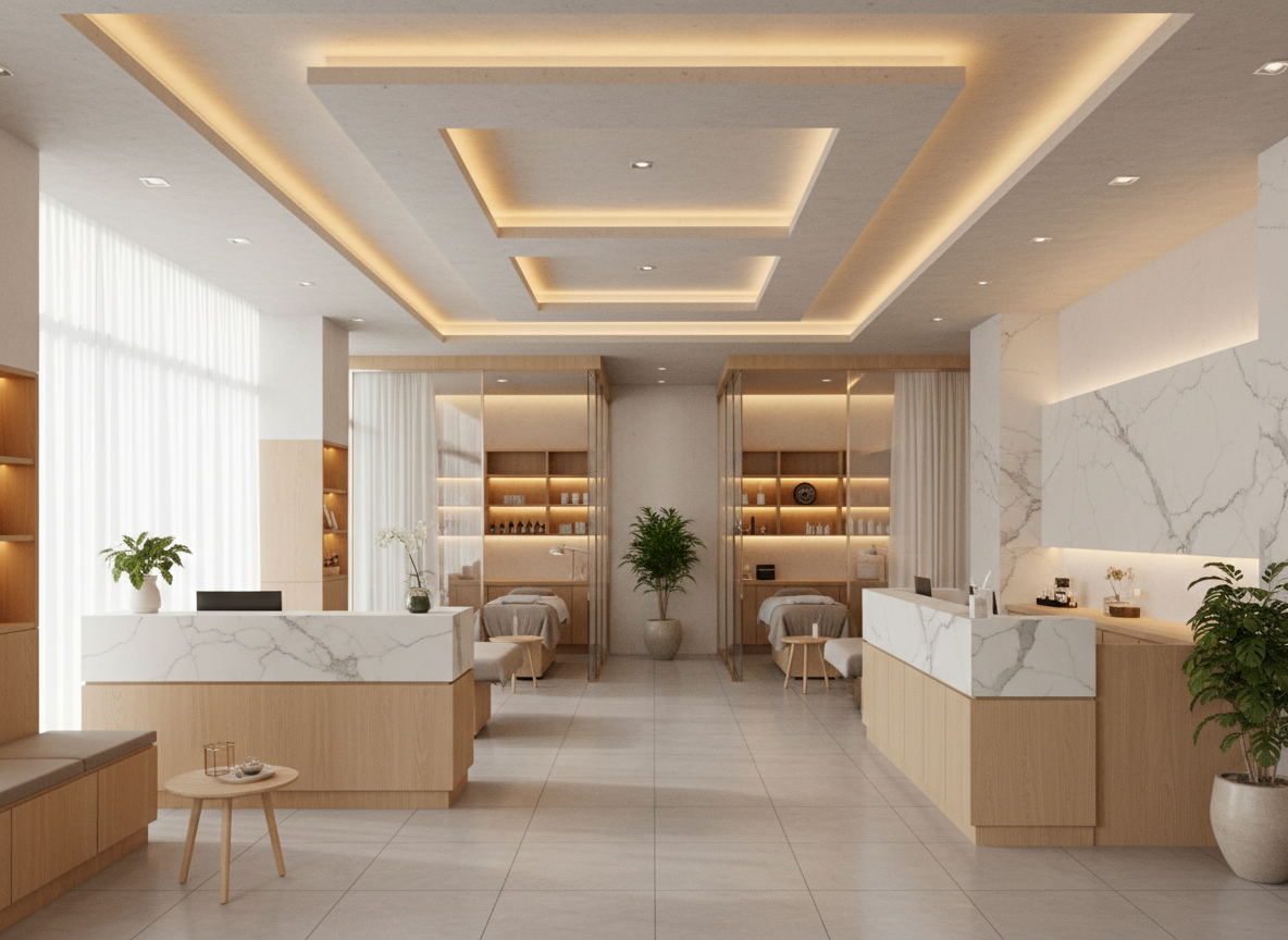 Một spa đẹp nhưng thi công sai kỹ thuật sẽ nhanh xuống cấp, ảnh hưởng đến trải nghiệm khách hàng và uy tín thương hiệu.