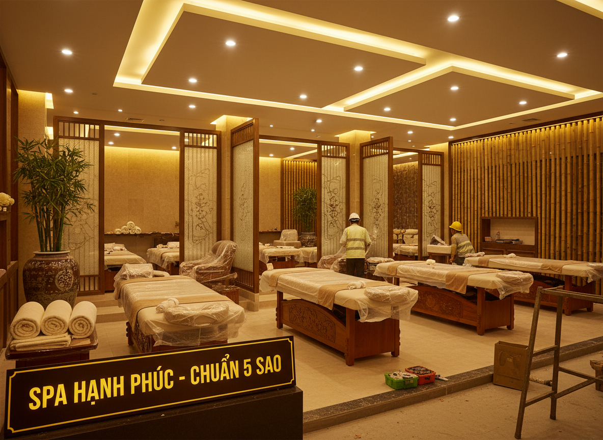 Tính bền vững cao: Spa trị liệu đòi hỏi độ bền đặc biệt do môi trường ẩm, nước và tinh dầu; thi công chuẩn kỹ thuật sẽ kéo dài tuổi thọ công trình.