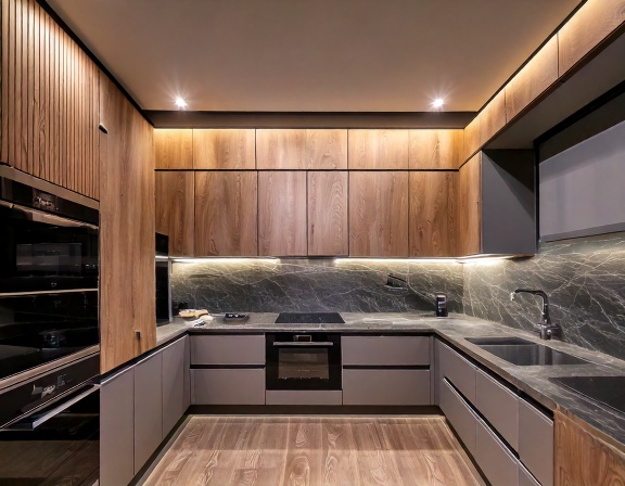 Với những gia đình yêu cầu cao về độ bền và đẳng cấp, gỗ tự nhiên như gỗ sồi, gỗ óc chó, gỗ xoan đào vẫn là lựa chọn được ưu tiên. Tuy nhiên, thi công tủ bếp gỗ tự nhiên chuẩn kỹ thuật đòi hỏi quy trình xử lý gỗ nghiêm ngặt, sấy khô đạt chuẩn để tránh nứt nẻ, co ngót trong môi trường bếp nóng ẩm.
