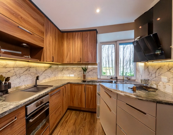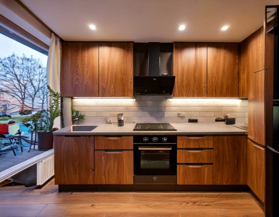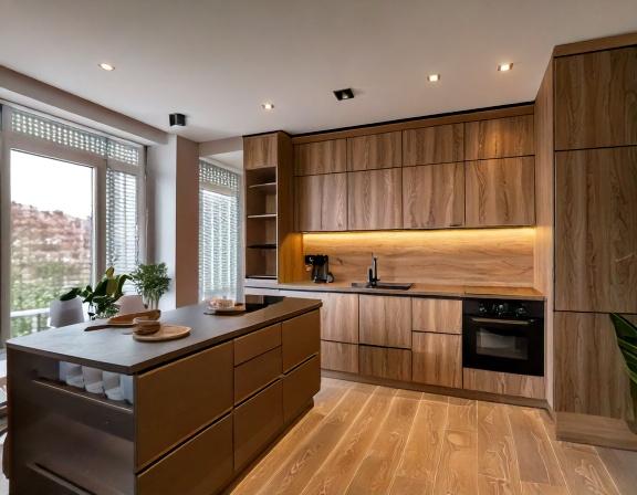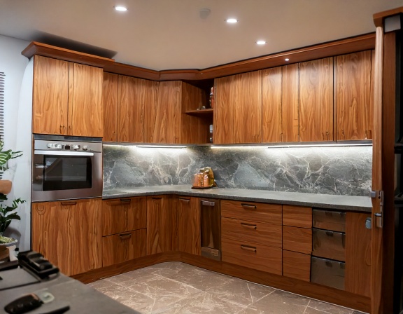 Trước hết, loại vật liệu gỗ đóng vai trò quyết định lớn đến giá thành. Tủ bếp gỗ công nghiệp phủ melamine thường có mức giá tiết kiệm hơn so với laminate, acrylic hay veneer. Trong khi đó, tủ bếp gỗ tự nhiên cao cấp có chi phí cao hơn nhưng đổi lại là độ bền và giá trị thẩm mỹ vượt trội. Phần mặt đá, kính ốp bếp, thiết bị bếp âm tủ và phụ kiện thông minh cũng chiếm tỷ trọng đáng kể trong tổng chi phí thi công.