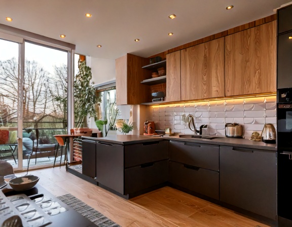 Tủ bếp chữ L phù hợp với những không gian bếp có hai mặt tường vuông góc. Kiểu bố trí này giúp tận dụng góc chết hiệu quả, đồng thời tạo tam giác bếp chuẩn giữa bếp nấu – chậu rửa – tủ lạnh, nâng cao hiệu suất sử dụng.