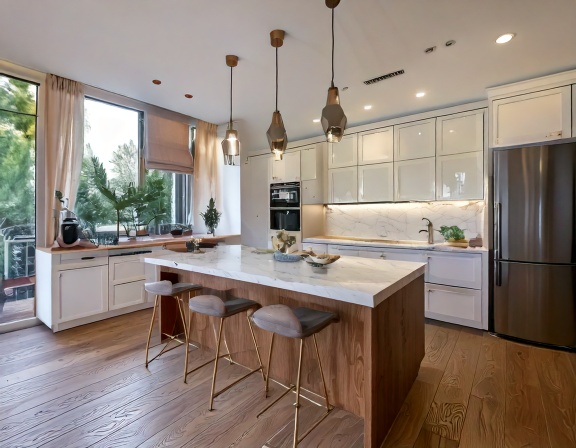 Ngoài ra, mặt đá bếp và hệ phụ kiện đi kèm cũng chiếm một phần đáng kể trong báo giá. Những loại đá cao cấp như đá quartz nhân tạo, đá marble nhập khẩu thường có giá cao hơn đá granite thông thường nhưng đổi lại là độ bền và tính thẩm mỹ vượt trội. Phụ kiện bản lề giảm chấn, ray trượt âm, tay nâng cánh tủ của các thương hiệu nổi tiếng giúp tủ bếp vận hành êm ái, bền bỉ nhưng cũng làm tăng chi phí đầu tư ban đầu.