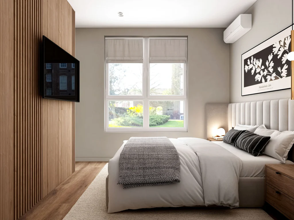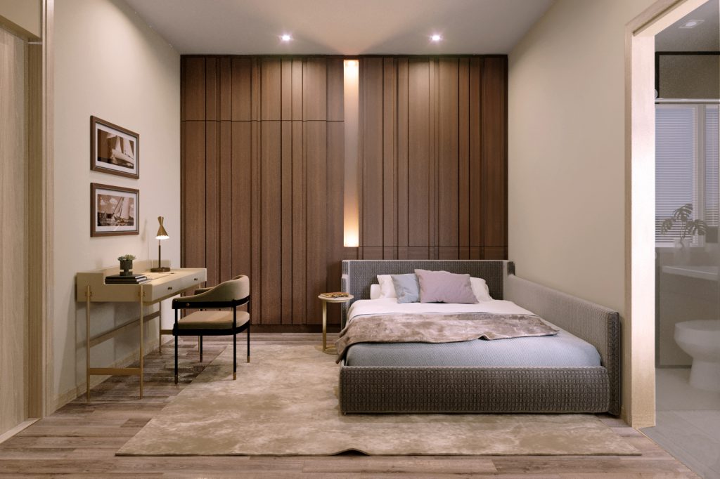 Bộ ba phòng ngủ gồm 1 phòng ngủ master và 2 phòng ngủ dành riêng cho bé thiết kế đa chức năng. Bên cạnh đó là bộ nội thất thông minh tủ quần áo âm tường kết hợp bàn trang điểm để tối ưu hóa không gian sinh hoạt.