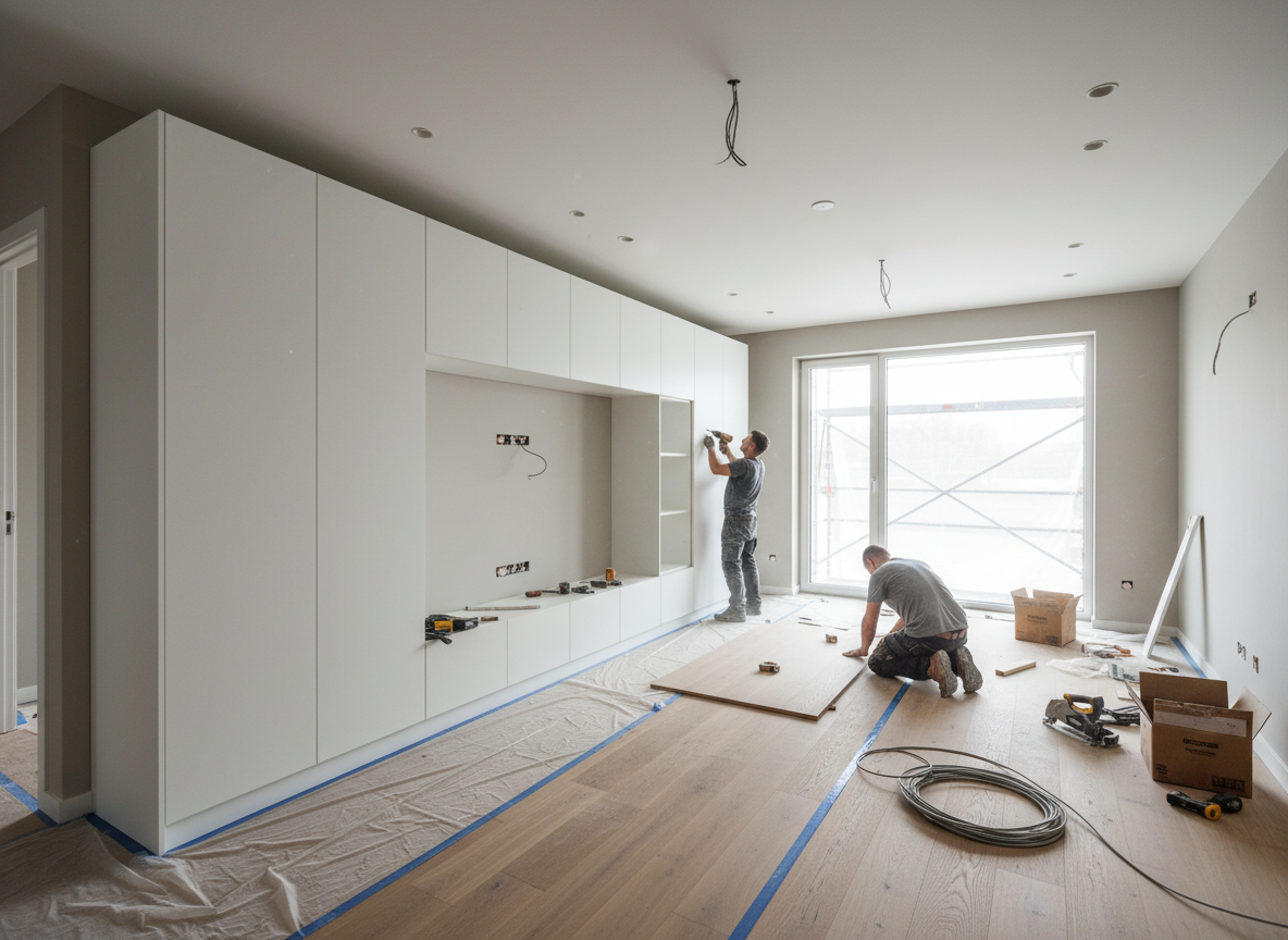 Thứ ba là thi công theo từng hạng mục rời, ví dụ chỉ thi công tủ bếp, phòng khách, phòng ngủ… Hình thức này phù hợp với những gia đình cải tạo từng phần theo ngân sách.