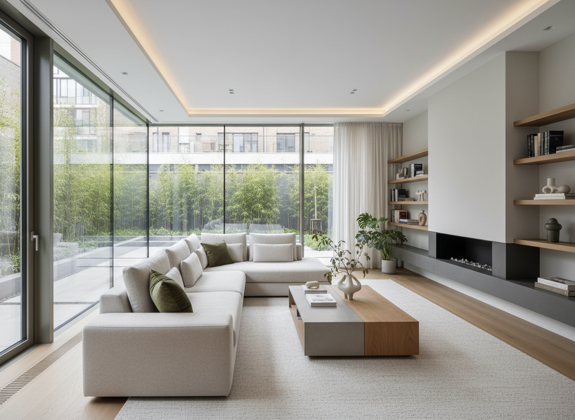 Ánh sáng là yếu tố then chốt giúp không gian trở nên rộng rãi hơn. Ánh sáng tự nhiên mang lại cảm giác thông thoáng, giảm tiêu thụ điện năng và mang lại hiệu ứng thị giác mạnh mẽ. Với nhà phố, việc bố trí cửa kính lớn, cửa lùa hoặc kính cường lực trong suốt là lựa chọn tối ưu. Kính vừa mang lại cảm giác mở rộng vừa tăng tính hiện đại cho không gian.