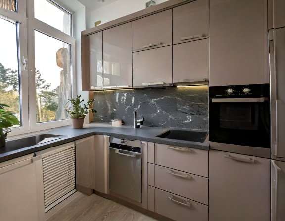 Tiếp theo là tủ bếp Acrylic chữ L – kiểu dáng được lựa chọn nhiều nhất nhờ khả năng tận dụng triệt để các góc tường, mở rộng không gian lưu trữ và tạo sự phân khu rõ ràng trong quá trình nấu nướng. Thiết kế chữ L đặc biệt phù hợp với nhà phố và căn hộ trung bình, giúp bố trí tam giác bếp khoa học, giảm quãng đường di chuyển khi sử dụng.