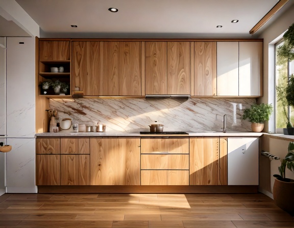 Gỗ tự nhiên như sồi, óc chó, xoan đào mang lại vẻ đẹp sang trọng, bền bỉ theo thời gian. Tuy nhiên, chi phí cao hơn và yêu cầu xử lý kỹ thuật tốt để hạn chế cong vênh trong môi trường ẩm như nhà bếp.
