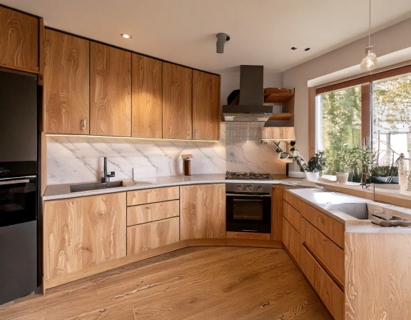 Ưu điểm đầu tiên là thiết kế linh hoạt theo yêu cầu thị trường. Bluecons không sản xuất đại trà mà tập trung vào gia công theo bản vẽ, theo tiêu chuẩn kỹ thuật và gu thẩm mỹ riêng của từng đối tác châu Âu. Từ phong cách hiện đại tối giản, Scandinavian, đến tủ bếp cao cấp cho căn hộ, villa hay dự án nhà ở xã hội, Bluecons đều có giải pháp phù hợp.