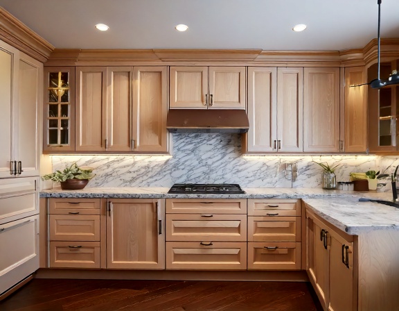 Ngoài ra, tủ bếp gỗ tự nhiên xuất khẩu Mỹ vẫn giữ vị thế riêng ở phân khúc cao cấp. Các loại gỗ như oak, maple, ash được xử lý kỹ lưỡng, giữ vân gỗ đẹp, mang lại cảm giác sang trọng và bền vững theo thời gian. Tuy nhiên, dòng này đòi hỏi xưởng sản xuất phải có năng lực kiểm soát nguyên liệu và quy trình sấy đạt chuẩn quốc tế.