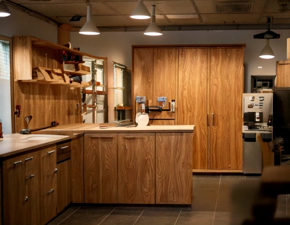 Bên cạnh đó, xưởng gia công tủ bếp còn mang đến sự minh bạch về vật liệu. Khách hàng có thể trực tiếp xem mẫu gỗ, kiểm tra độ dày, cốt gỗ, bề mặt phủ như MDF lõi xanh chống ẩm, HDF, plywood, gỗ tự nhiên… thay vì chỉ nhìn hình ảnh minh họa. Đây là yếu tố quan trọng giúp hạn chế rủi ro khi đầu tư cho không gian bếp – khu vực có tần suất sử dụng cao nhất trong ngôi nhà.